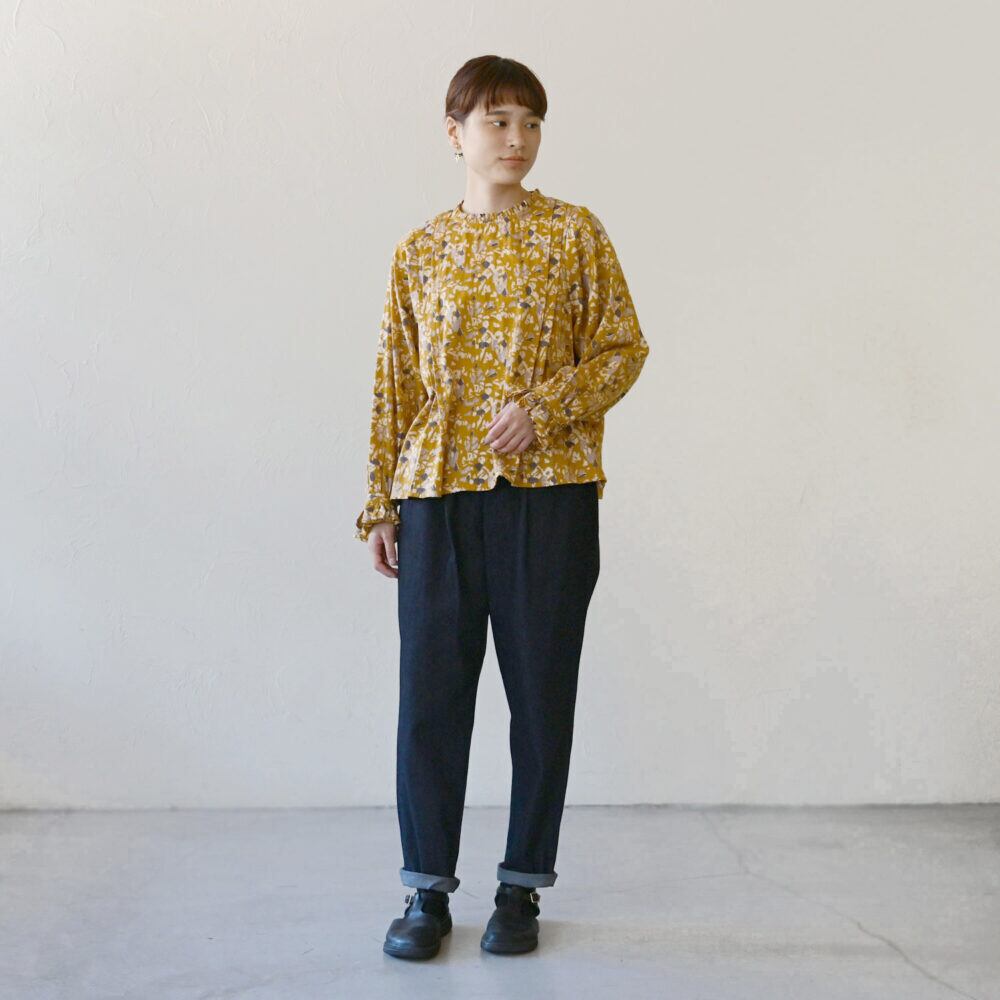 肩から二本ずつ入った大きなタックも、このブラウスに動きを付けてくれる大事なポイントです。