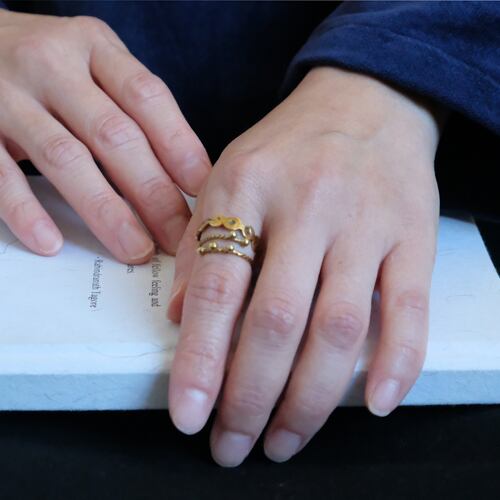 タネにみたてた粒粒がふんだんにあしらわれたフリーサイズのリング。