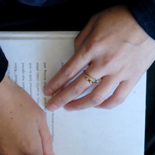 ツイストされた繊細なリングが植物のつるのようにも見えます。