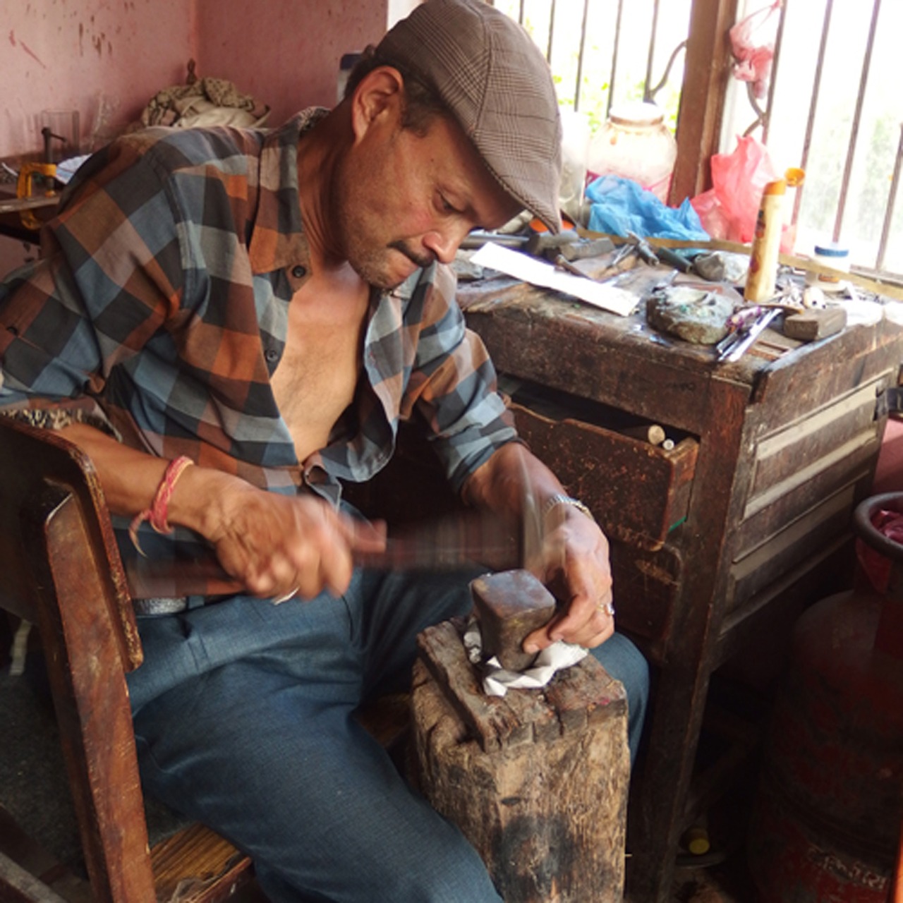工房にはいると、カンカンカン!と真鍮を打ち付ける音が響き渡ります。
