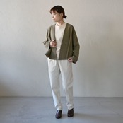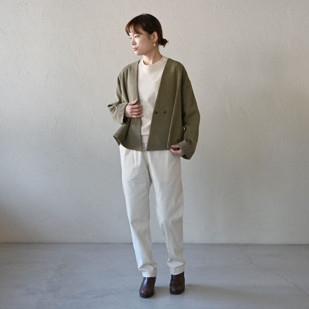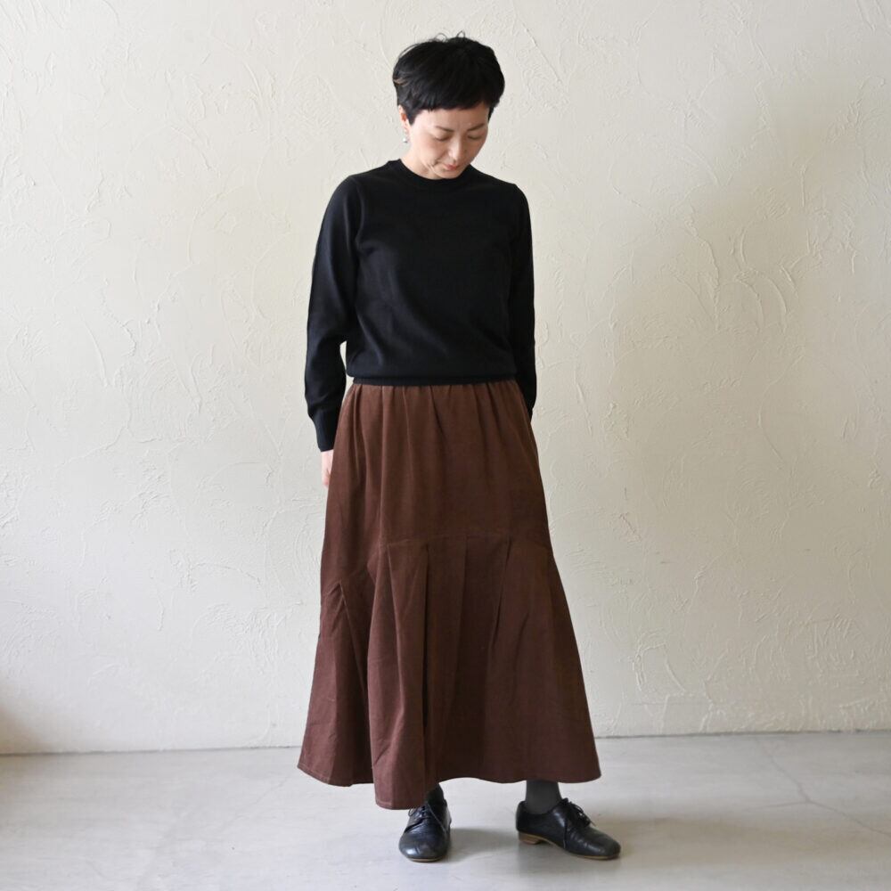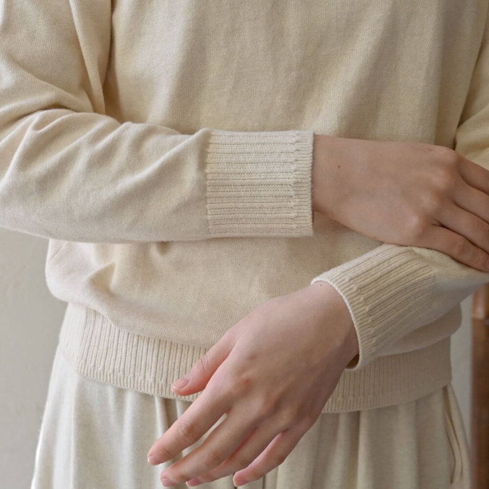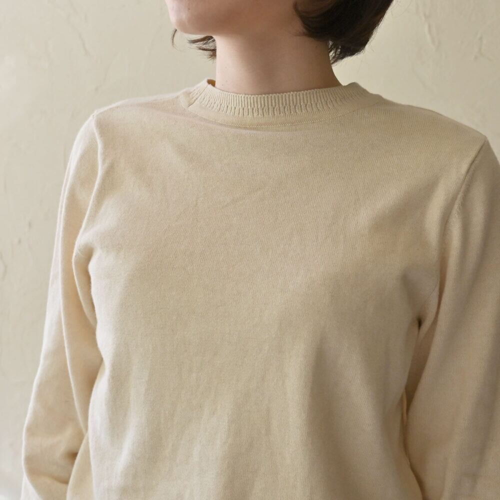 ベーシックな形なので一枚で着るのはもちろん、シャツと重ねたり、ワンピースやジャケットのインナーにもオススメです。