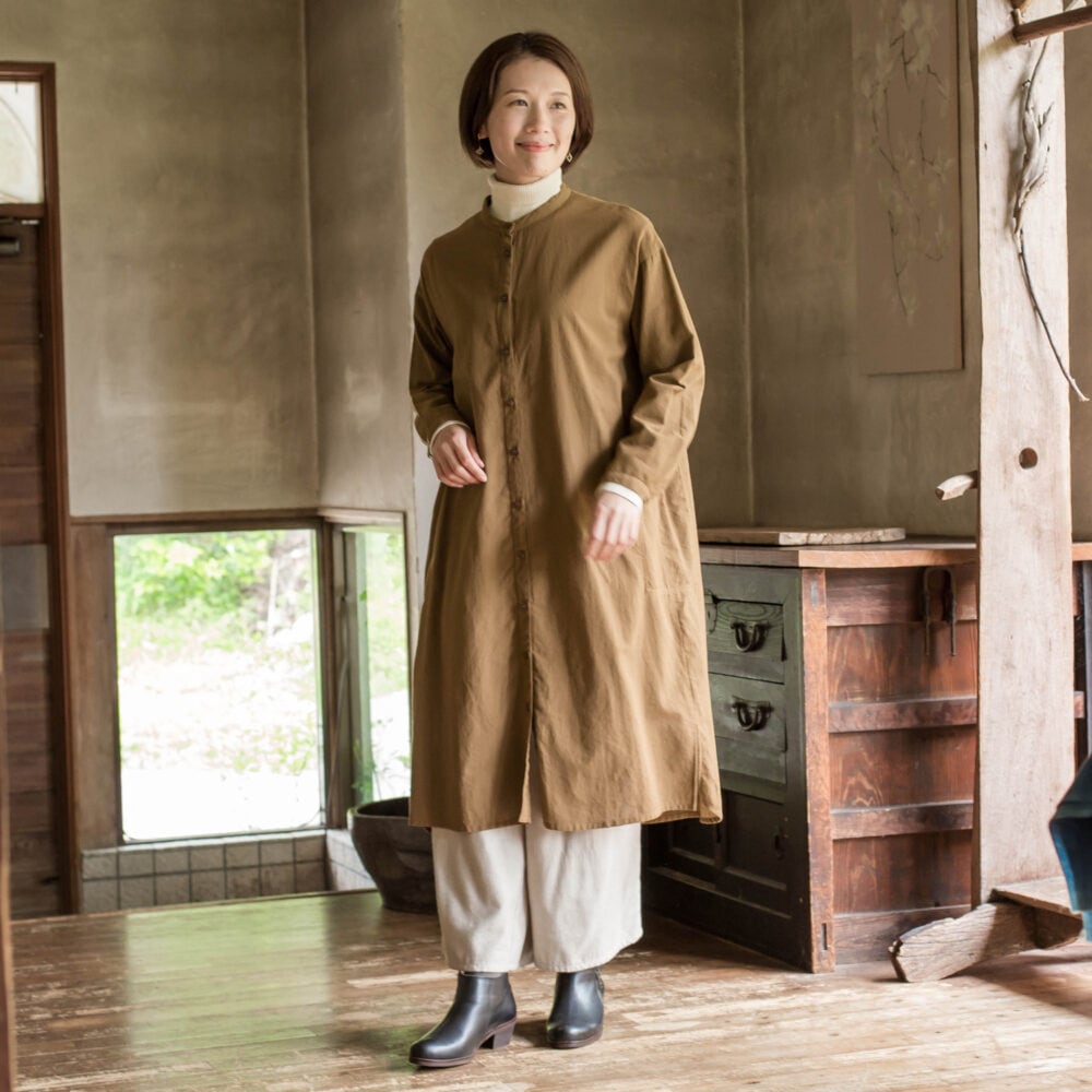 もはやsisamの定番である、ベーシックなスタンドカラーのワンピース。