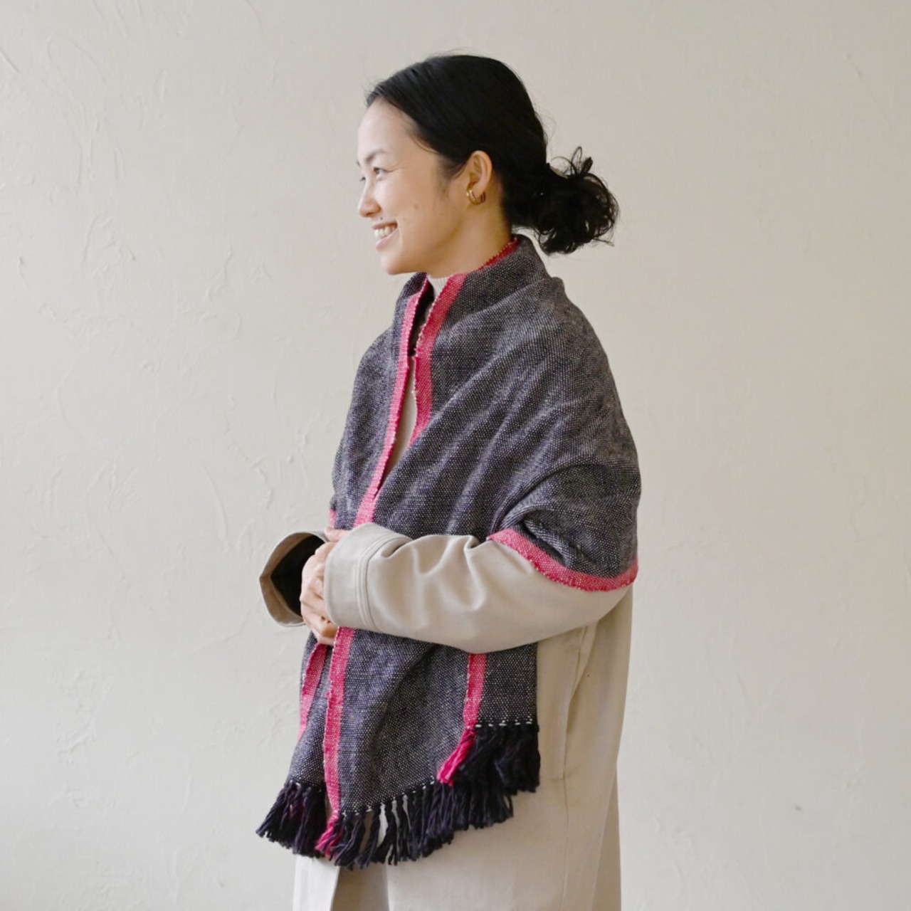 そんな想いから、0番手という一番太い糸で織り上げたストールが登場!