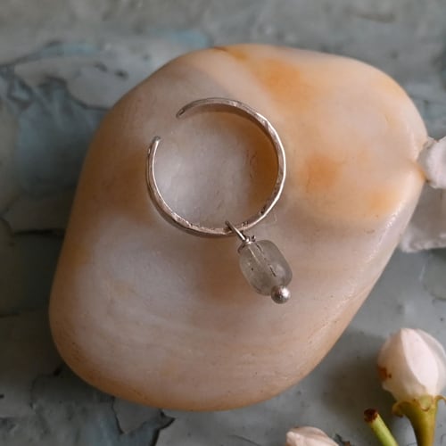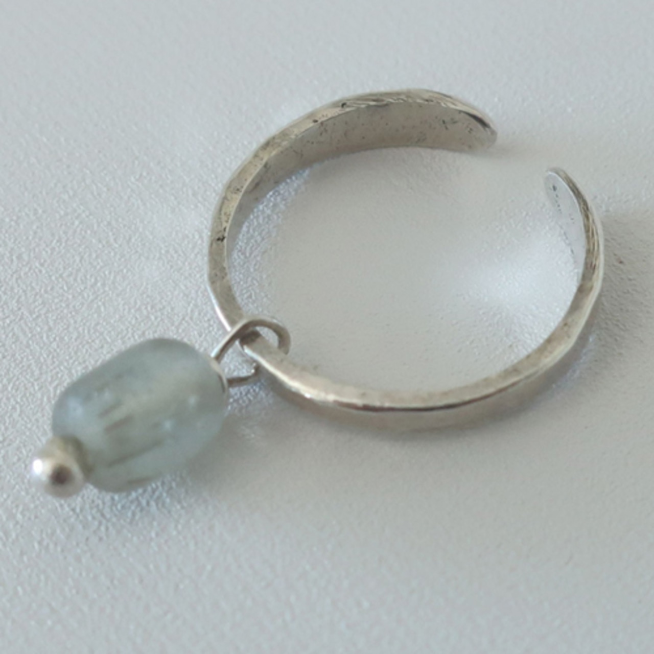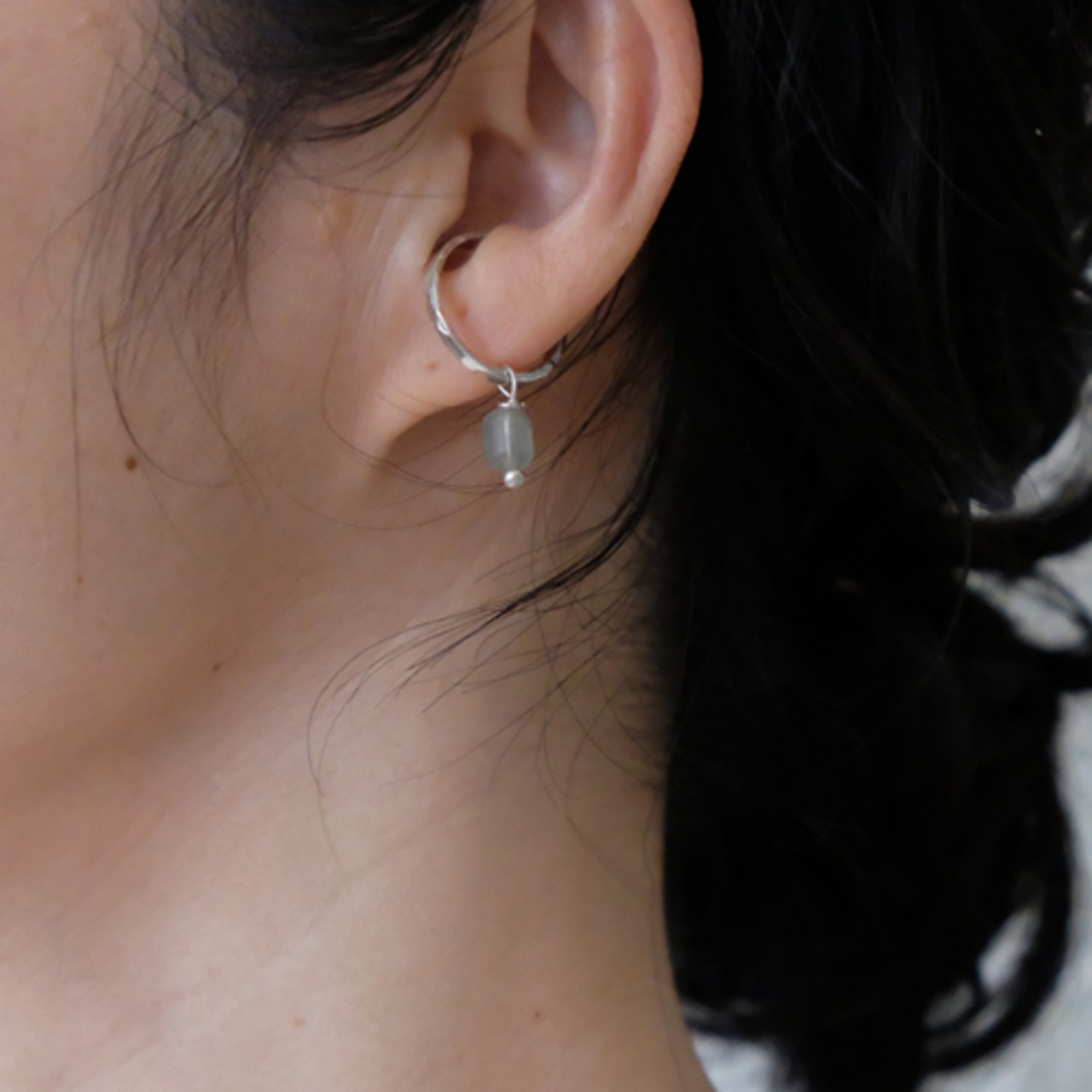 リサイクルガラスのビーズをあしらったイヤーカフ。