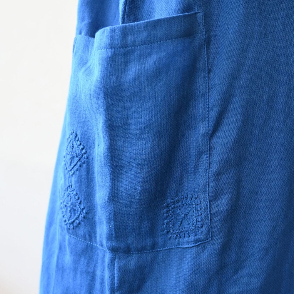 ポケットのさりげないワンポイントには、インドの伝統的なチカン刺繍を。