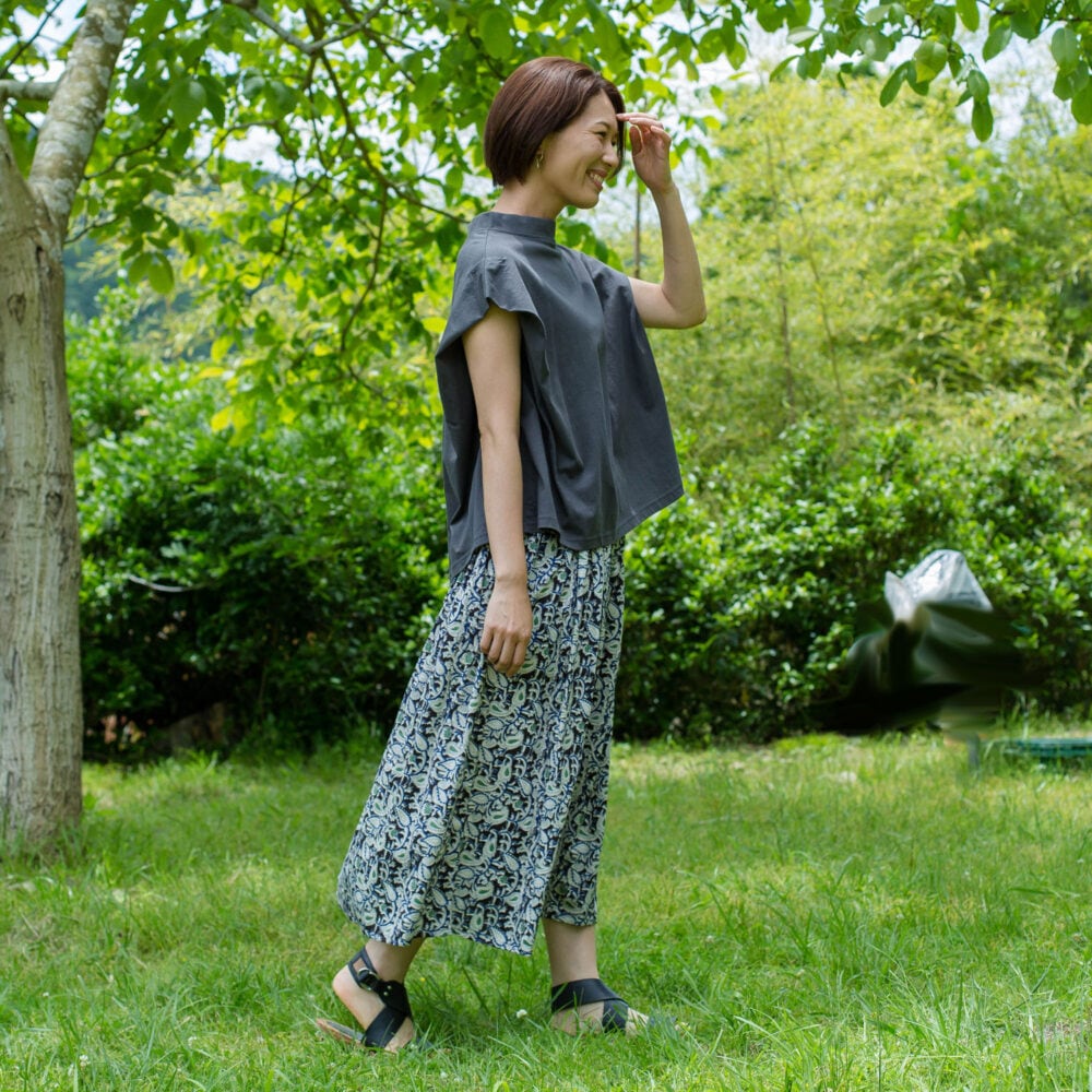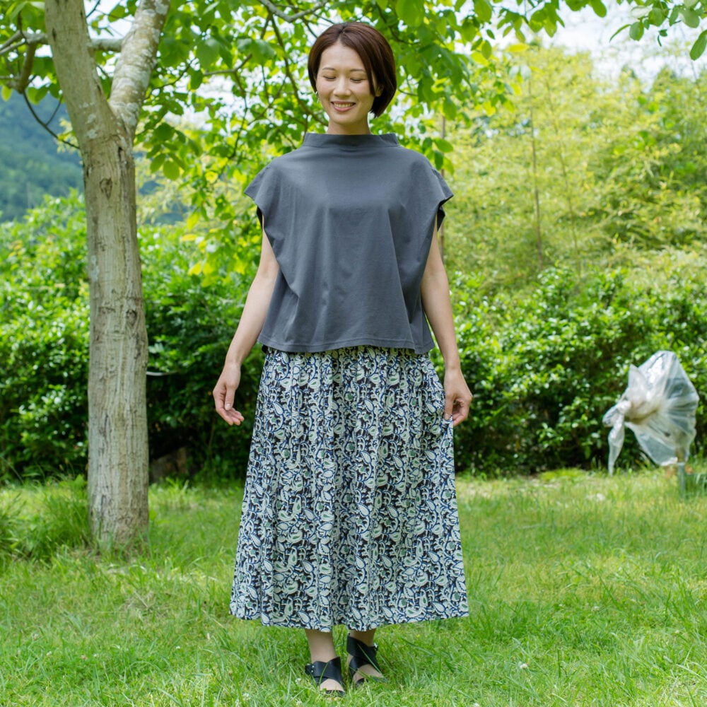 実はこちらのスカート、ウエストにタックを沢山寄せるサリーの着方から着想を得られました。