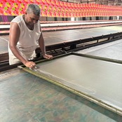初めに薄いナイロン生地を枠に張り、スクリーンをコーティングしていきます。