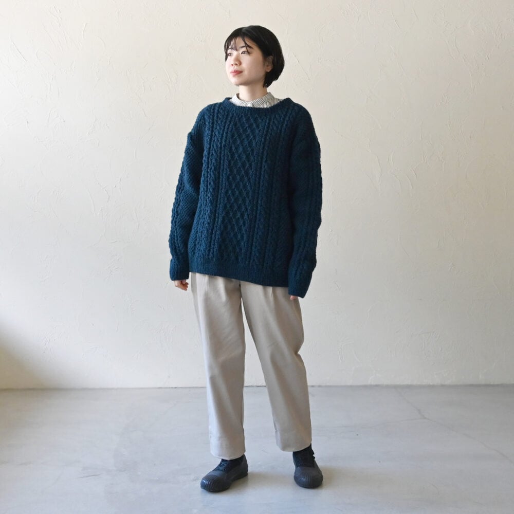 太めの糸を使っているので、秋冬のアウターやボトムにぴったりのしっかりとした生地厚です。