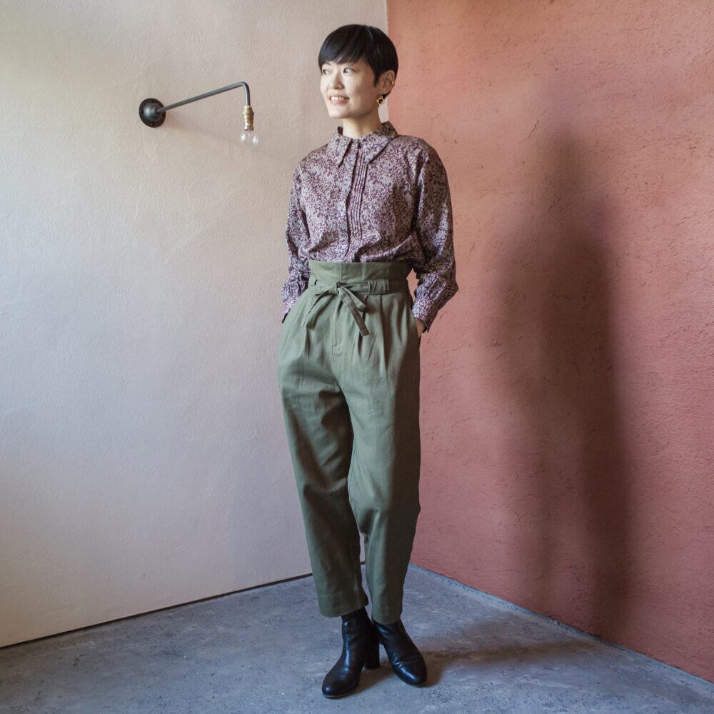 ヒップ周りはゆったりですが、タックがあることで納まりよくコンパクトに。