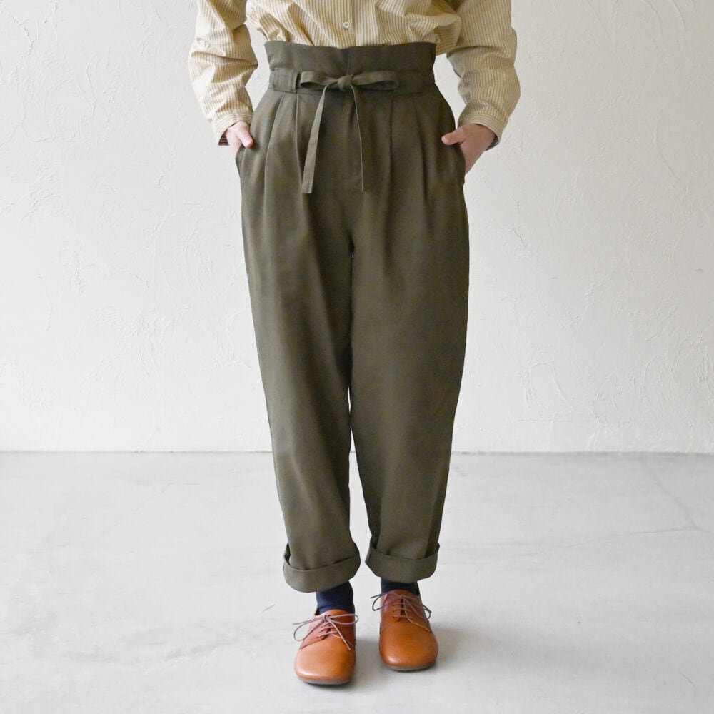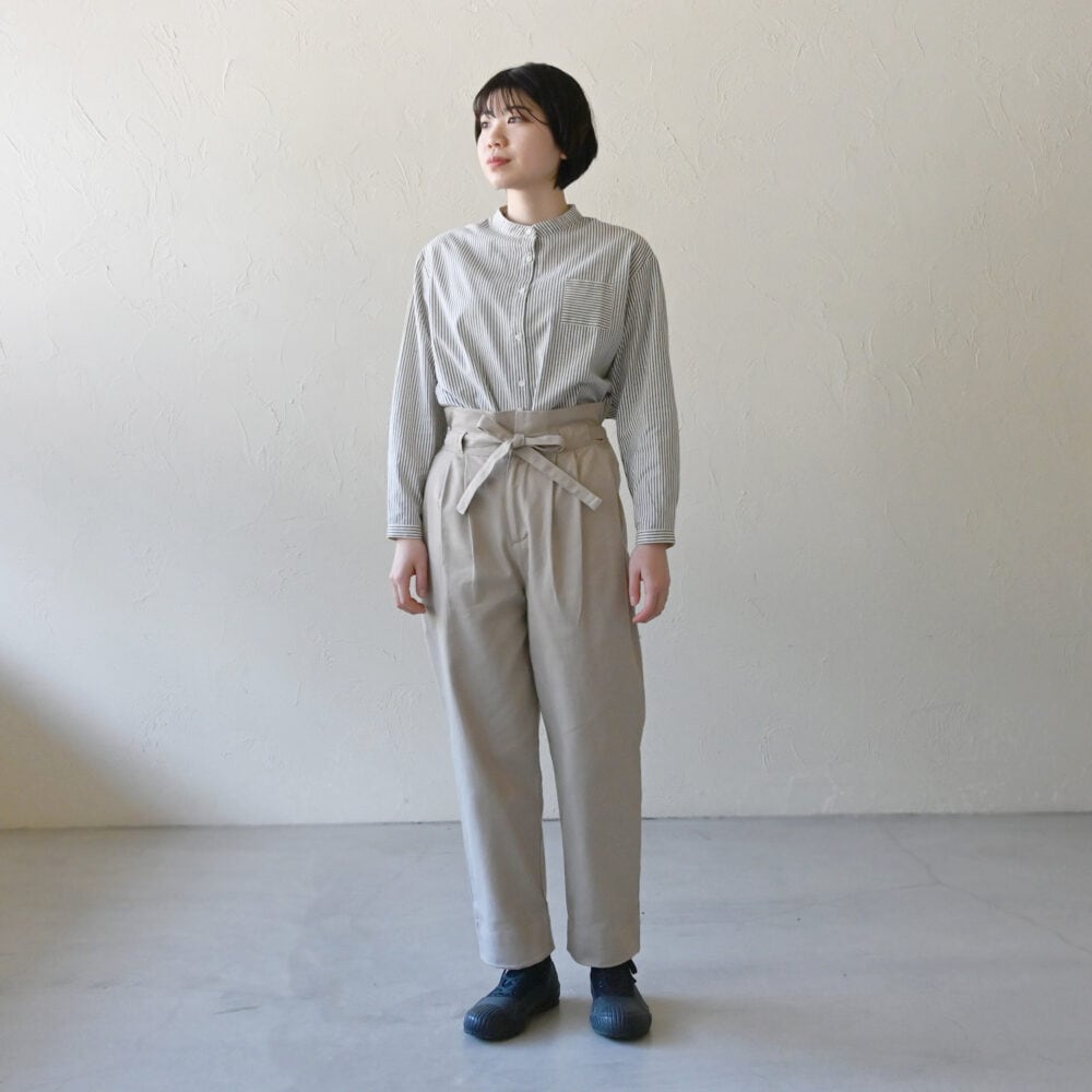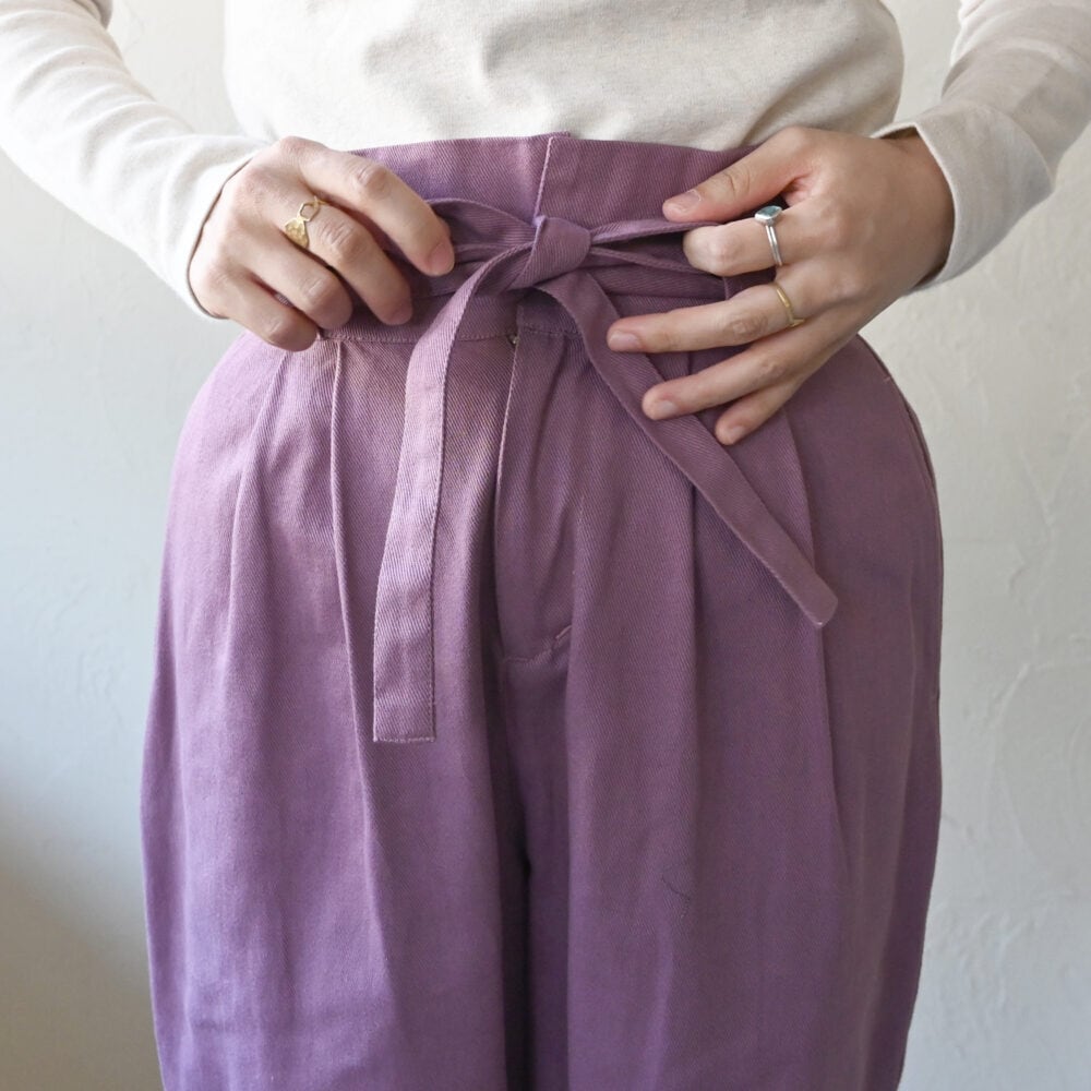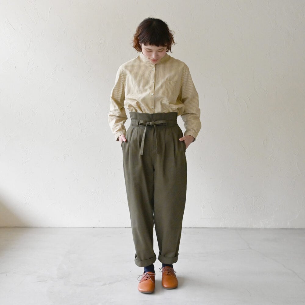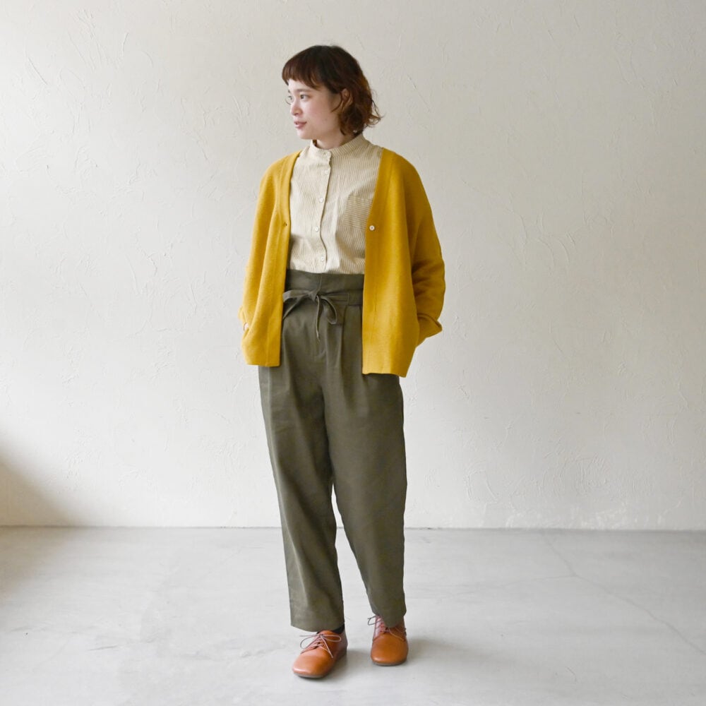 付属のウエストリボンは外して、シンプルな穿き方も。